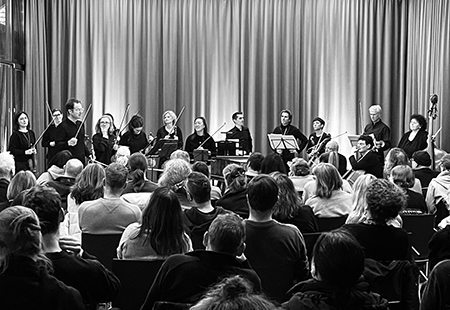 Für die vorweihnächtliche Stimmung wählte das Ensemble vorwiegend barocke Werke, ergänzt durch Musik des 20. Jahrhunderts. Im Südhang spielte die es Auszüge aus dem Programm „Wunschstücke“, Werke von Antonio Vivaldi, Grażyna Bacewicz, Georg Philipp Telemann und Georg Anton Benda.