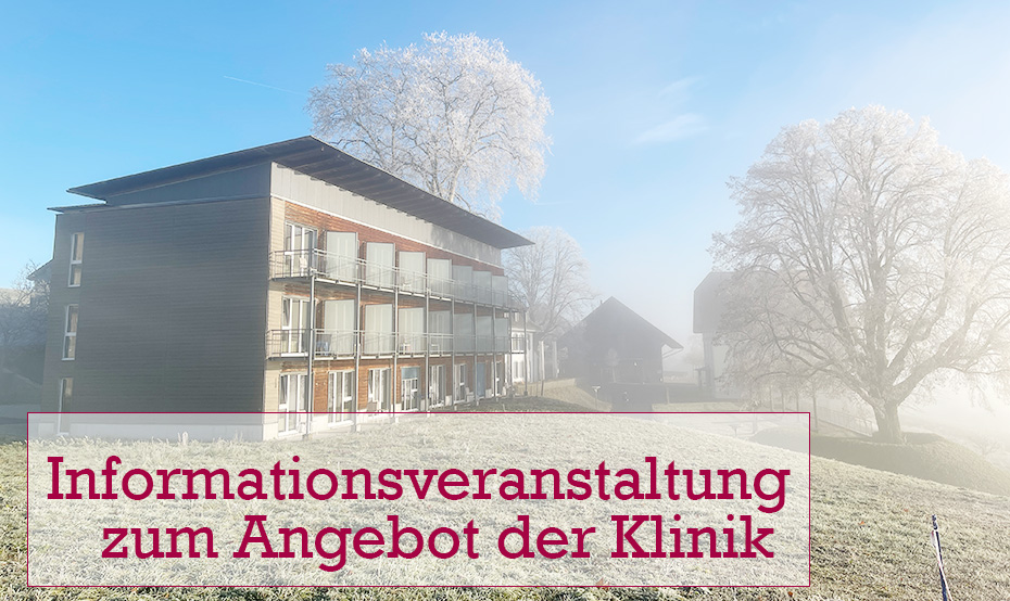 Möchten Sie mehr über die Behandlung in der Klinik Südhang erfahren? Ziehen Sie einen Entzug oder eine Therapie in Erwägung? Die Klinik lädt jeweils am letzten Freitag im Monat zu einem Informationsanlass für Betroffene, Angehörige, Fachpersonen und andere interessierte Personen ein. Sie können sich unverbindlich die Klinik ansehen, sich über die verschiedenen Therapieangebote informieren lassen und Fragen stellen.